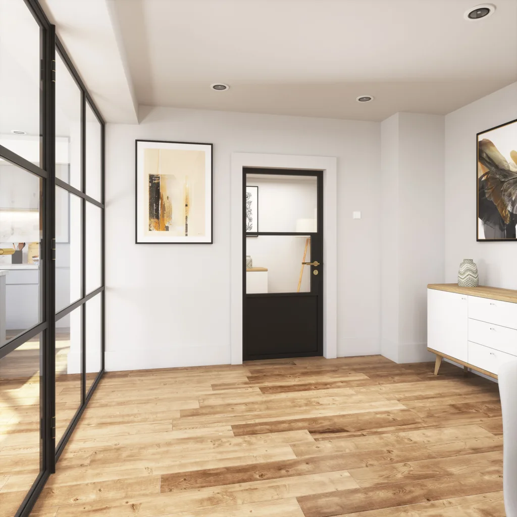 Drawing inspiration from classic steel-framed glazing systems, the Korniche Internal Partition brings stunning industrial aesthetics into your home. The ultra-slim aluminium framework creates elegant sightlines, maximising light flow while maintaining an open and spacious feel.
